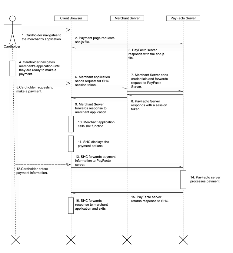 script src="https://uat.ca.shc.payfacto.cloud/secure-hosted-checkout/v1/browser/shc.js"></script>).<div id="shc-fields"></div>).https://uat.ca.shc.payfacto.cloud/secure-hosted-checkout/v1/sessions endpoint from your server application.A fully functional example application can be found in our public Bitbucket repository.